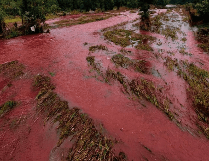 Большой ажиотаж и беспокойство среди криворожан возник когда река Ингулец через некоторое время после подрыва гидротехнического сооружения страной-террористом окрасилась в ярко-красный цвет.