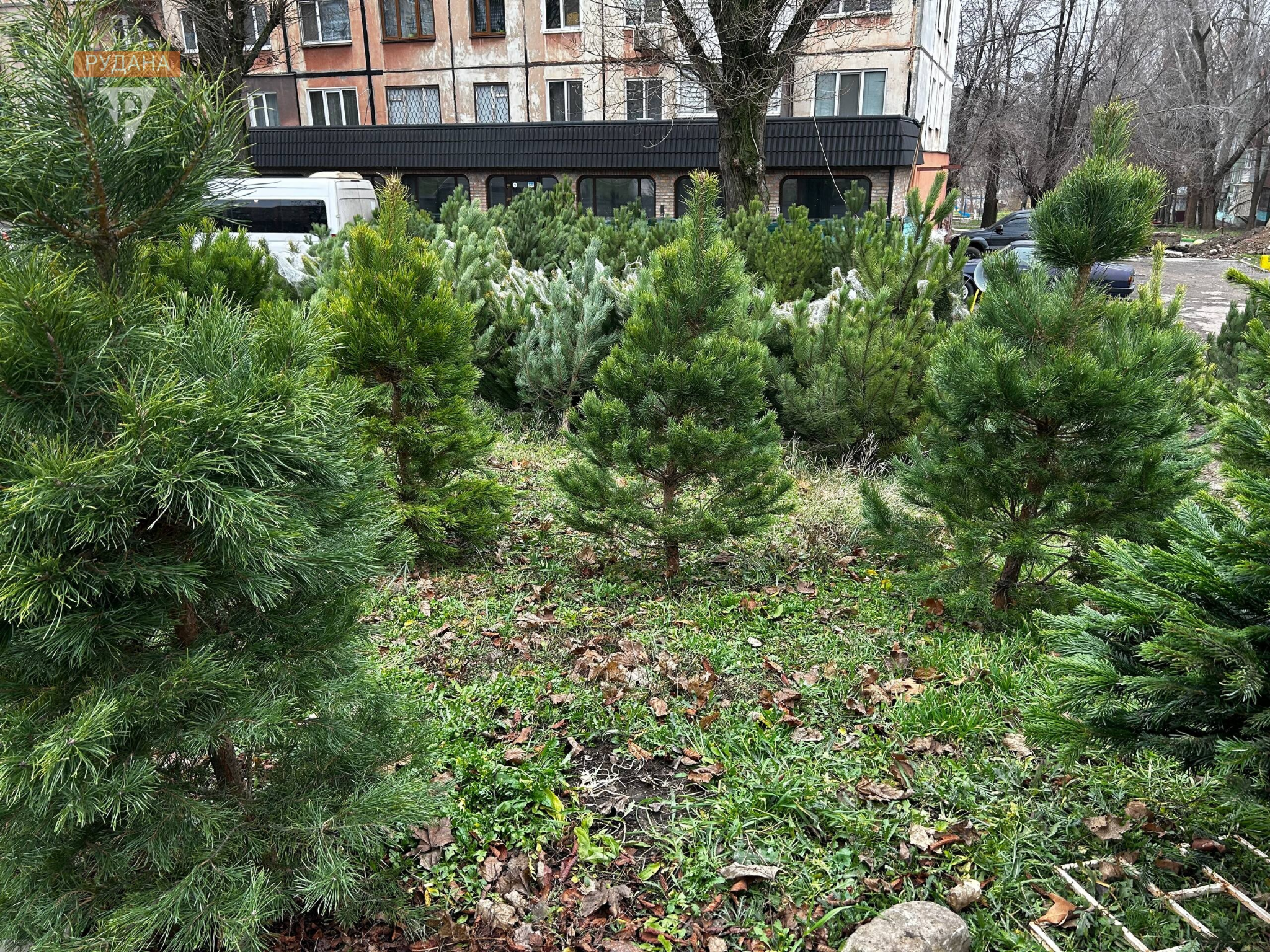 - Що продають: зазвичай це 1-2 позиції. Найчастіше — бюджетна сосна висотою 1–1.5 метра або маленька настільна ялинка;